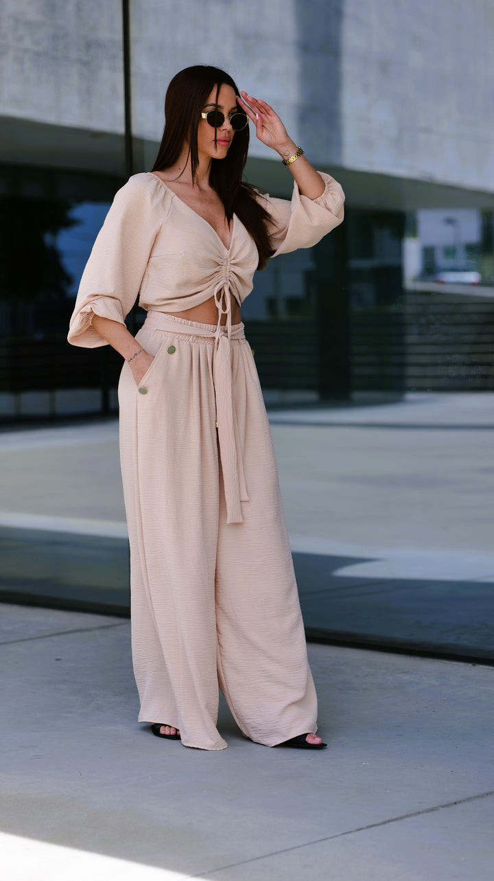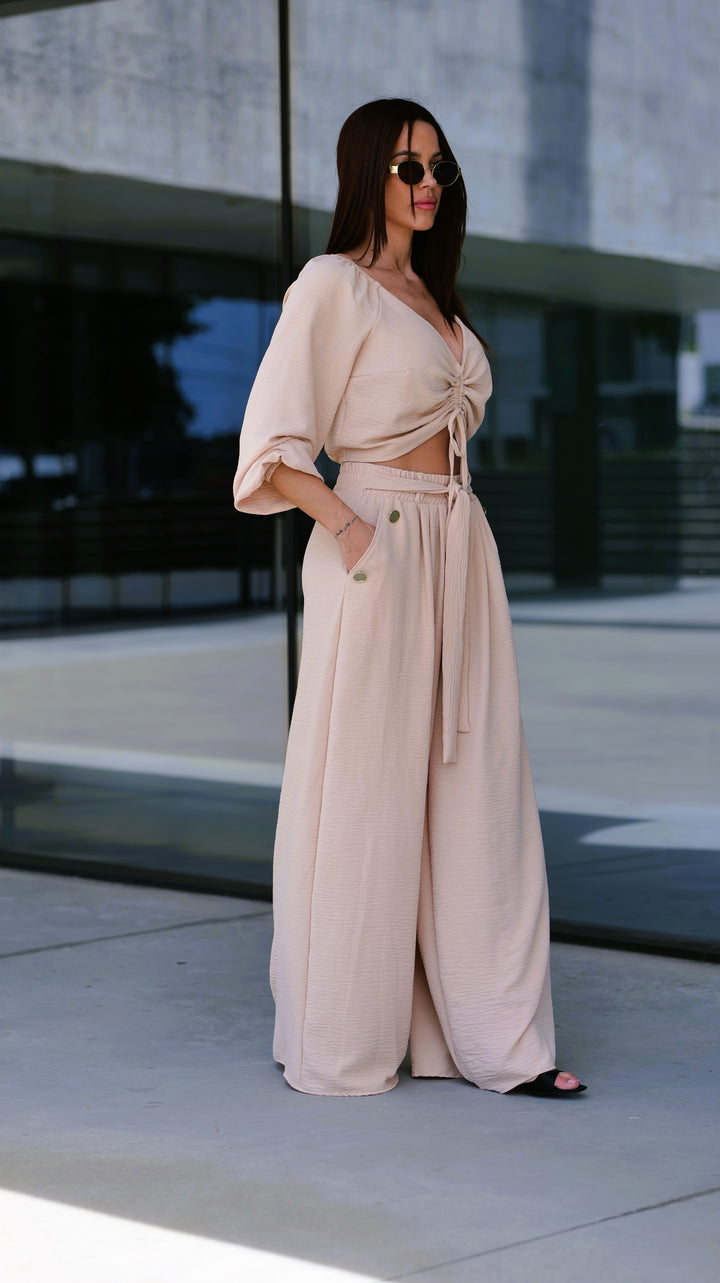🔹 Calça estilo pantalona con bolsos laterales , que proporciona fluidez y comodidad sin perder elegancia.