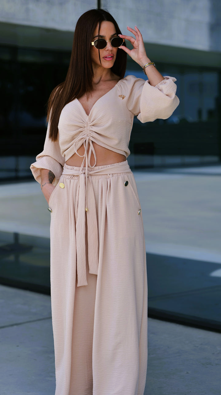 Este conjunto moderno y cheio de estilo é a escolha ideal para quem quer destacar-se com um look leve, fresco e em sintonia com as tendências da estação.
