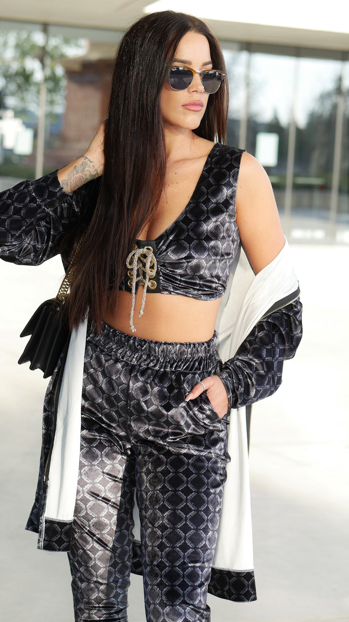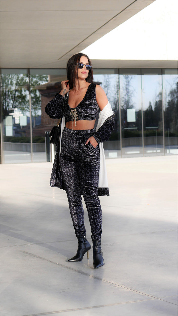 El monograma exclusivo de la marca da un toque de exclusividade y sofisticação, tornando este conjunto único. Ideal para quem quer combinar praticidade y estilo, seja para un evento especial o para un look diario cheio de atitude.