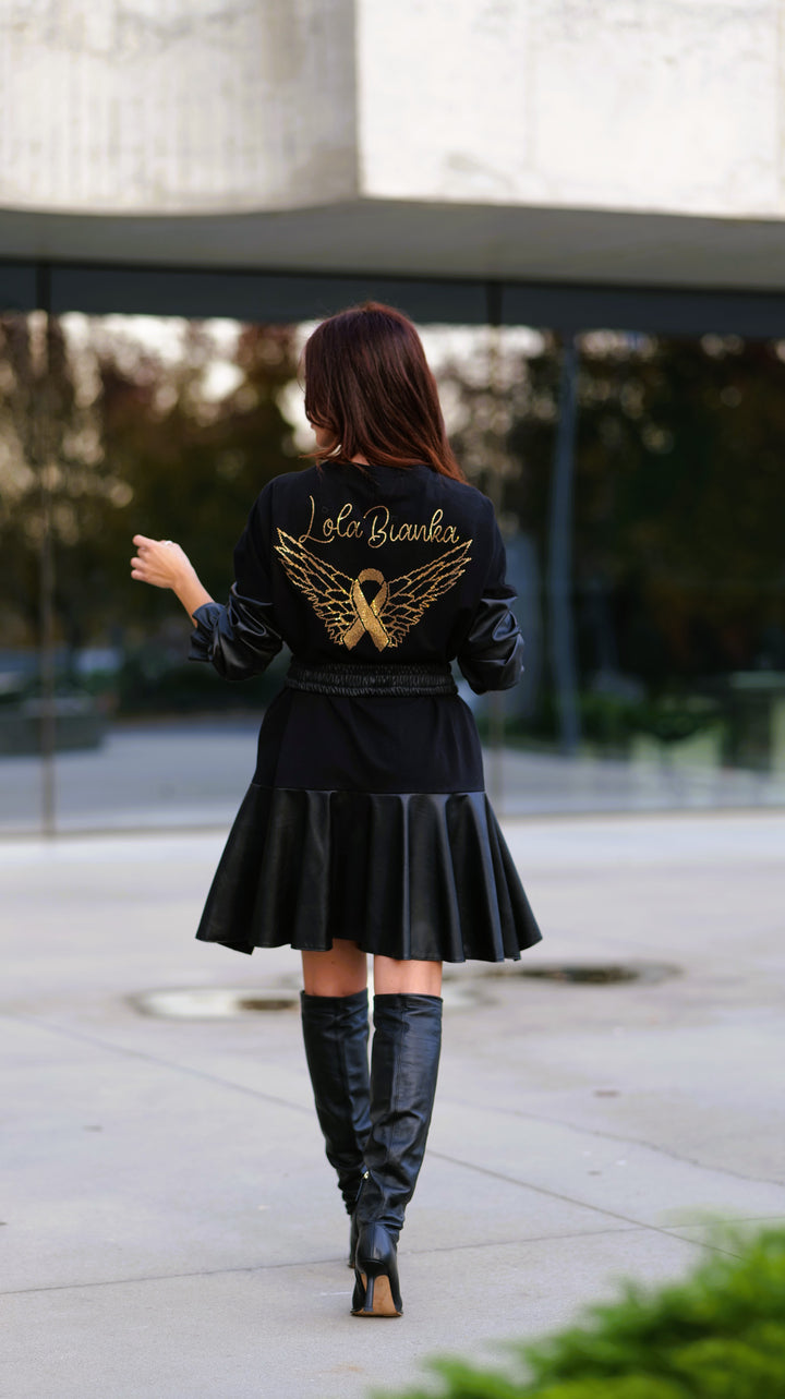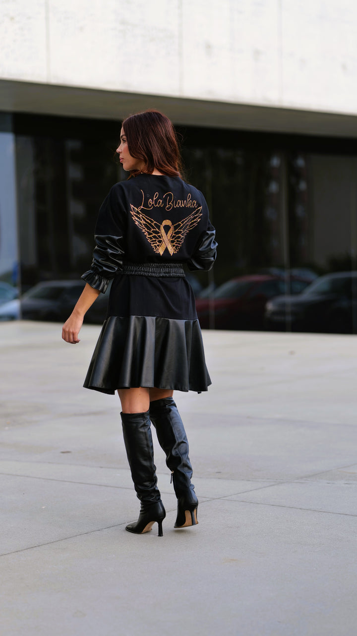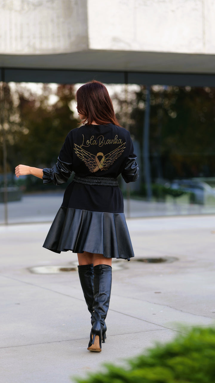 Este vestido em algodão une conforto y sofisticação com um design único. Como aplicaciones en ecopele trazem um toque moderno y arrojado, enquanto os detalles em strass agregan brillo y glamour en medida segura. El cinto completo del visual, conferindo leveza e um ar contemporâneo. Ideal para eventos donde el estilo y la comodidad son indispensables, este vestido es la elección perfecta para que desees destacar con elegancia. ¡Combine con accesorios discretos para realzar sus detalles u opte por complementos usados para lucir aún más marcante!