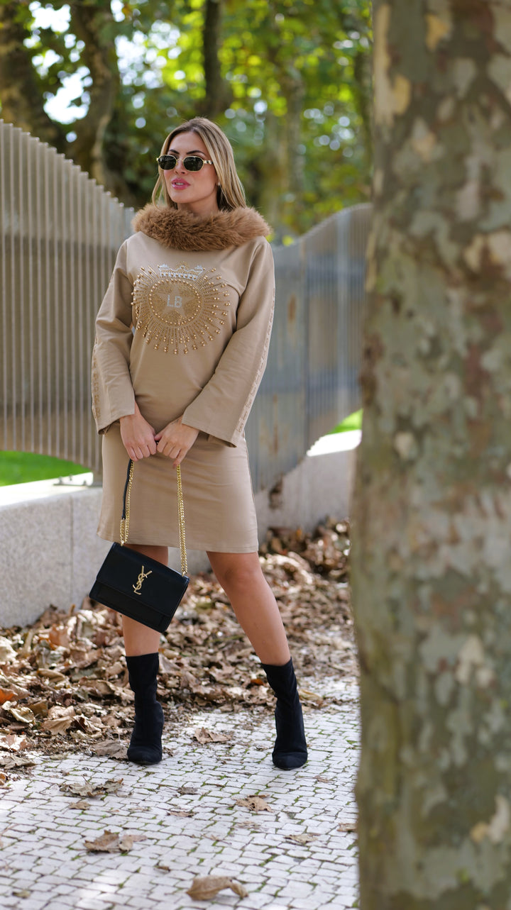 Este vestido elegante es una elección ideal para desear un look cómodo y encantador. Una gola con adorno de pelo sintético añade un toque de lujo y aconchego, perfecto para ocasiones más formales o noches especiales. El diseño clásico e atemporal del vestido garantiza un caimento impecable, mientras que el pelo sintético trae una sensación de suavidad y sofisticação. Combine con accesorios delicados y saltos altos para un visual refinado e inesquecível. Una pequeña cosa que vas a desear para ti, deslumbrante, con comodidad y estilo.