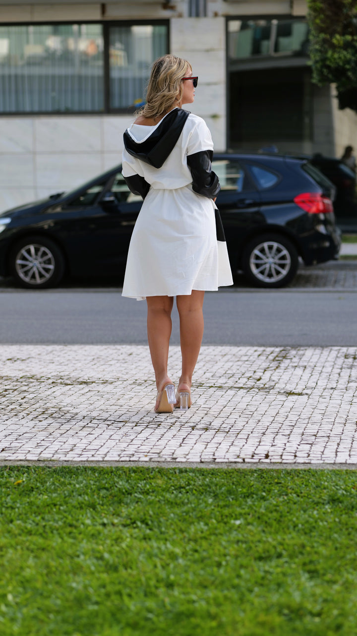 Este vestido em algodão é a escolha perfeita para quem procura comodidad y estilo con un toque moderno. El cordón de ajuste en la cintura permite personalizar el caimento, destacando una silueta de moda elegante. Como mangas en ecopelle agregamos un contraste arrojado y cómodo al diseño. Versátil e ideal para diversas ocasiones, este vestido combina la suavidad del algodão con la modernidad de dos detalles en ecopelle, criando un visual único y cheio de personalidade.