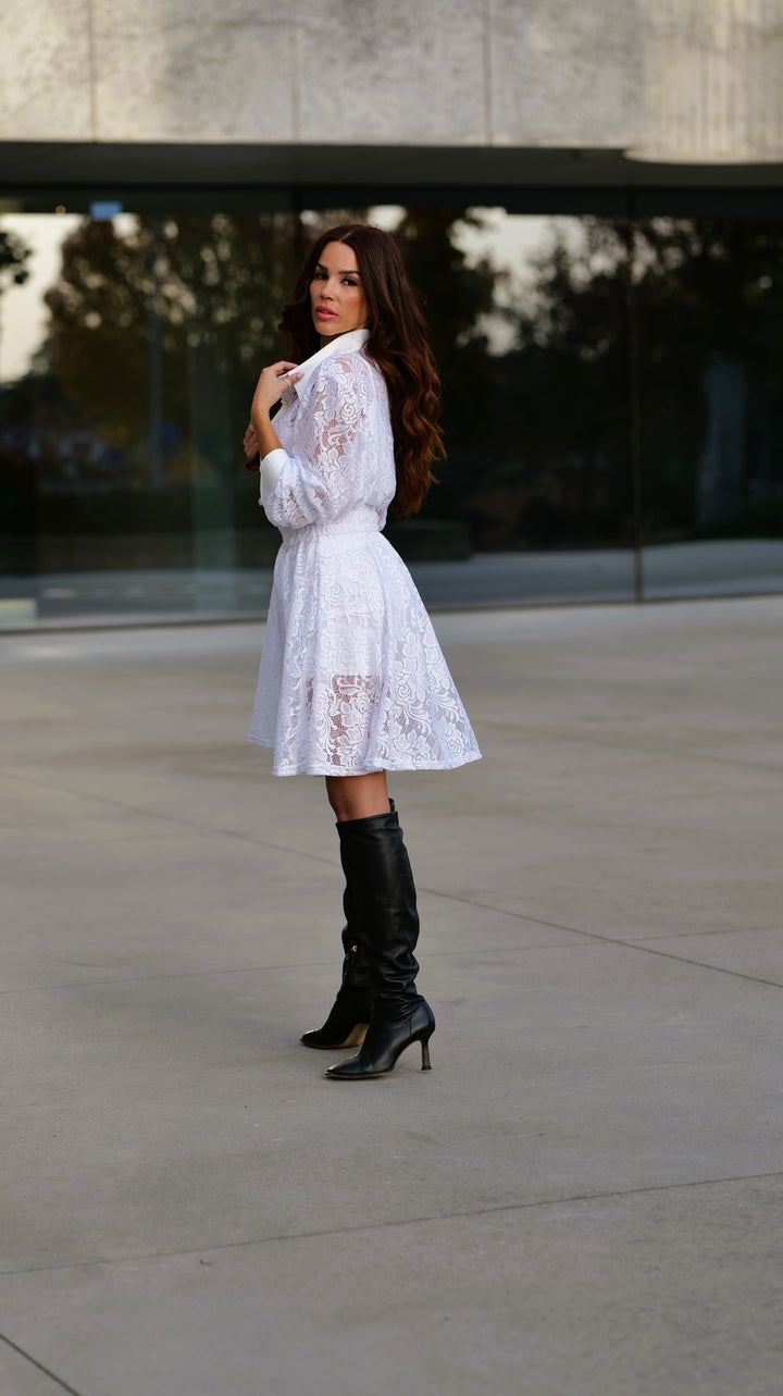 Este vestido clásico rendido es una definición de elegancia y encanto. Con delicados detalles en ropa, ele traz um ar cómodo y romántico, ideal para ocasiones especiales. El diseño se complementa con un cinturón ajustado , que destaca una silueta y añade un toque refinado ao visual. Versátil y atemporal, este vestido combina fácilmente con saltos y accesorios elegantes para un look impecable. ¡Un artículo esencial para quem desea impresionar con estilo y buen gusto!