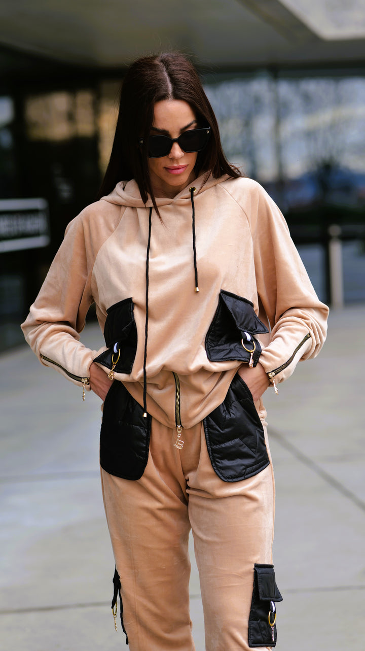 Este conjunto sofisticado é feito em veludo macio e suave, proporcionando máximo conforto sem abrir mão do estilo. As calças e a camisola contam com bolsos laterais, garantindo praticidade no dia a dia. Os detalhes personalizados em dourado adicionam um toque de elegância e exclusividade, tornando a peça ainda mais marcante. Ideal para quem procura um look estiloso, moderno e confortável, perfeito para diversas ocasiões.