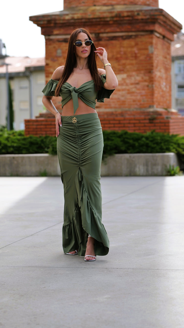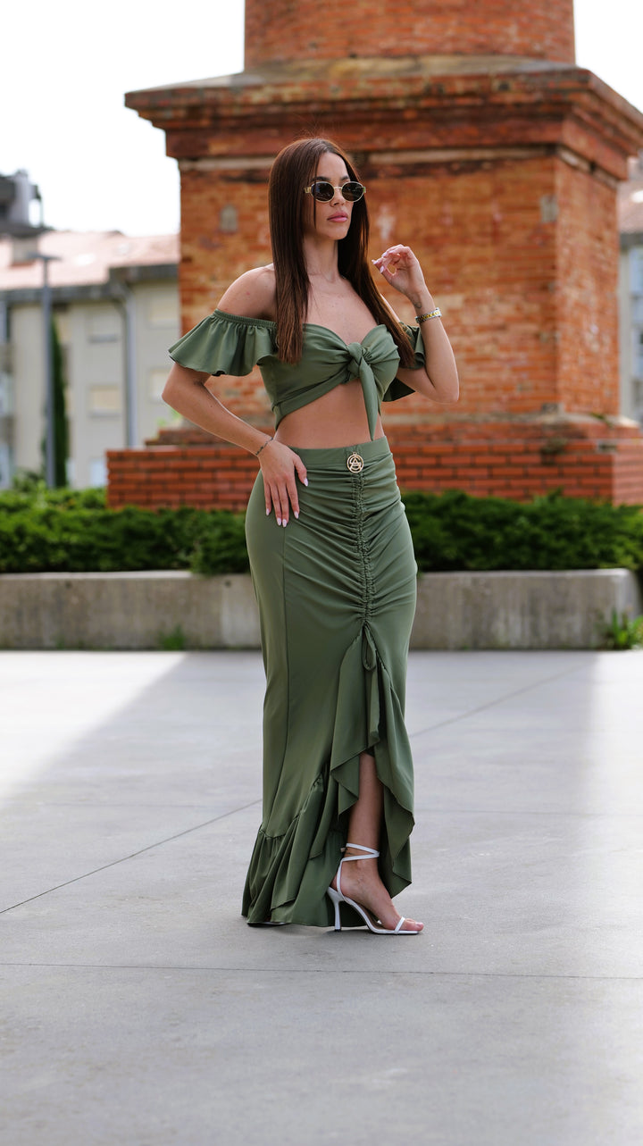 Este conjunto é a expressão perfeita de feminilidade e sofisticação, com um design cuidadosamente pensado para realçar a silhueta e o estilo da mulher moderna.